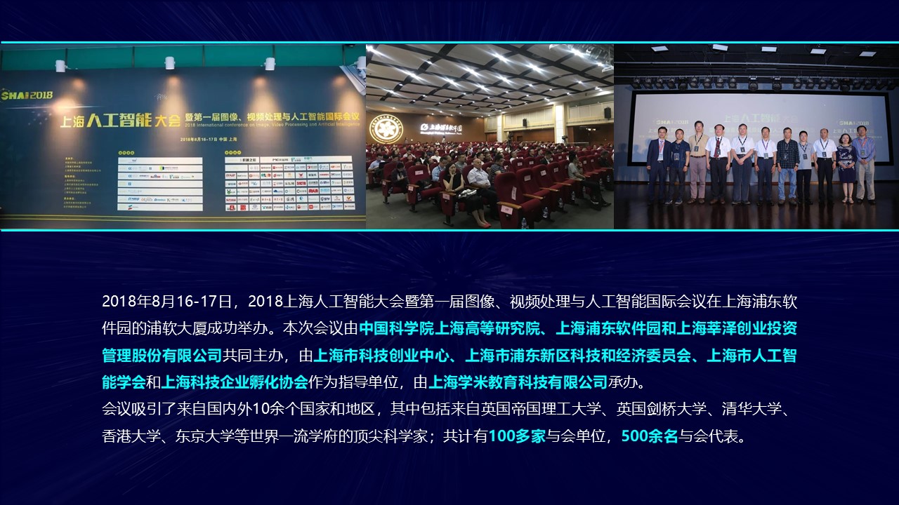 2019上海人工智能大会(SHAI2019),由中国科学院上海高等研究院主办,将于2019年8月23-25日在上海举办。大会将围绕当前热点话题、核心技术以及备受关注的人工智能领域问题进行深入交流和探讨,本届大会将邀请国内外人工智能领域的顶尖科学家集聚上海,充分发挥其带动与引领作用,聚集分散在世界各地的高端人才及先进技术,吸引众多国内有潜质的优秀科学家参与,打造中国人工智能领域产、学、研紧密结合的高端前沿交流平台,促进技术创新与落地。