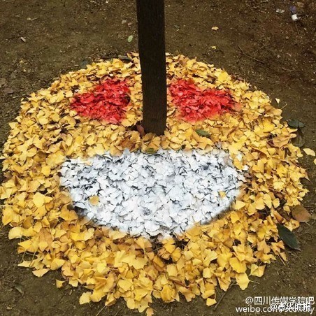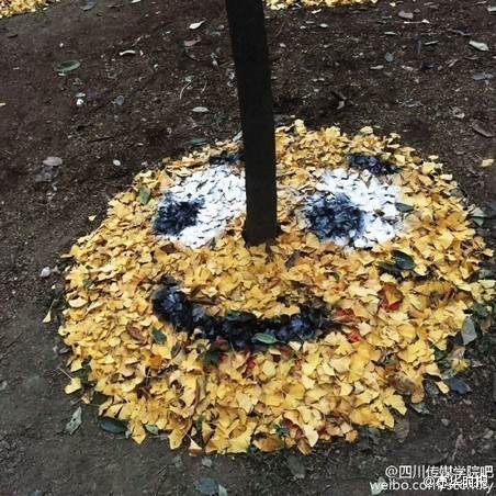 近日,@四川传媒学院 校园里的银杏黄了,来自该校15级艺术设计与动画学院雕塑专业的同学们脑洞大开,直接就在树下玩起了银杏表情包~~厉害了word同学!