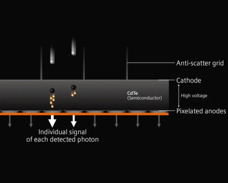 与传统CT相比,光子计数CT能够以更低的辐射剂量提供更丰富的图像内容。光子计数图像具有更高的对比噪声比(contrast-to-noise ratio,CNR),从而产生更高的分辨率,并能修正射线硬化(beam hardening)等伪影。