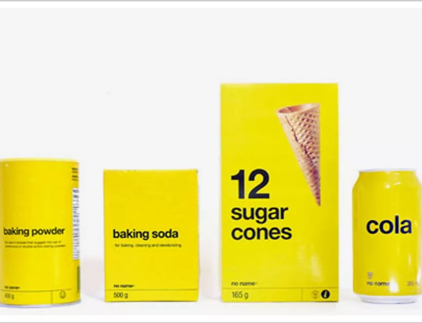 1978年3月21日,No Name推出了16款有着黄色背景,黑色Helvetica字体极简包装的产品。 截至2000年,这种PPT文档式包装已应用在No Name的2900多款产品上。 No Name虽然高举无名之旗,但却高度重视品牌要素,其标签、促销传单包括室内设计等所有品牌有关的元素,都采用了统一的颜色和字体——尤其是,几十年如一日的黄黑搭配。黄黑对比形成强烈的视觉冲击,令人对产品过目不忘。 No Name的核心理念是,省却一切不必要因素,直击核心,给消费者最物有所值的产品——“无需支付高价就能拥有质量”。 为讲性价比做到极致,No Name还硬气承诺:所有产品售价均低于市场同类产品10%至40%。
