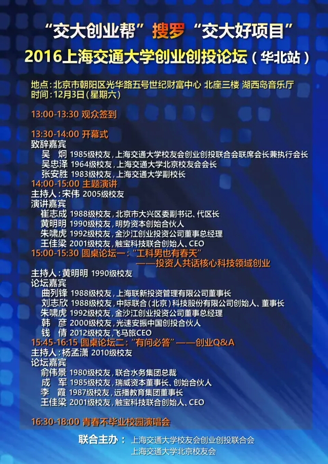 当交大创投帮VS交大创业帮 “理工男的春天”来到北京: 从第一代互联网与高科技创业的龙头——携程、东方财富网、汉庭、TP-Link、酷派手机,到饿了么、小红书、洋码头、百姓网、触宝电话、凹凸租车新一代迅速崛起的创新企业,创始人的标签上都赫然写着“交大”的闪亮标签。