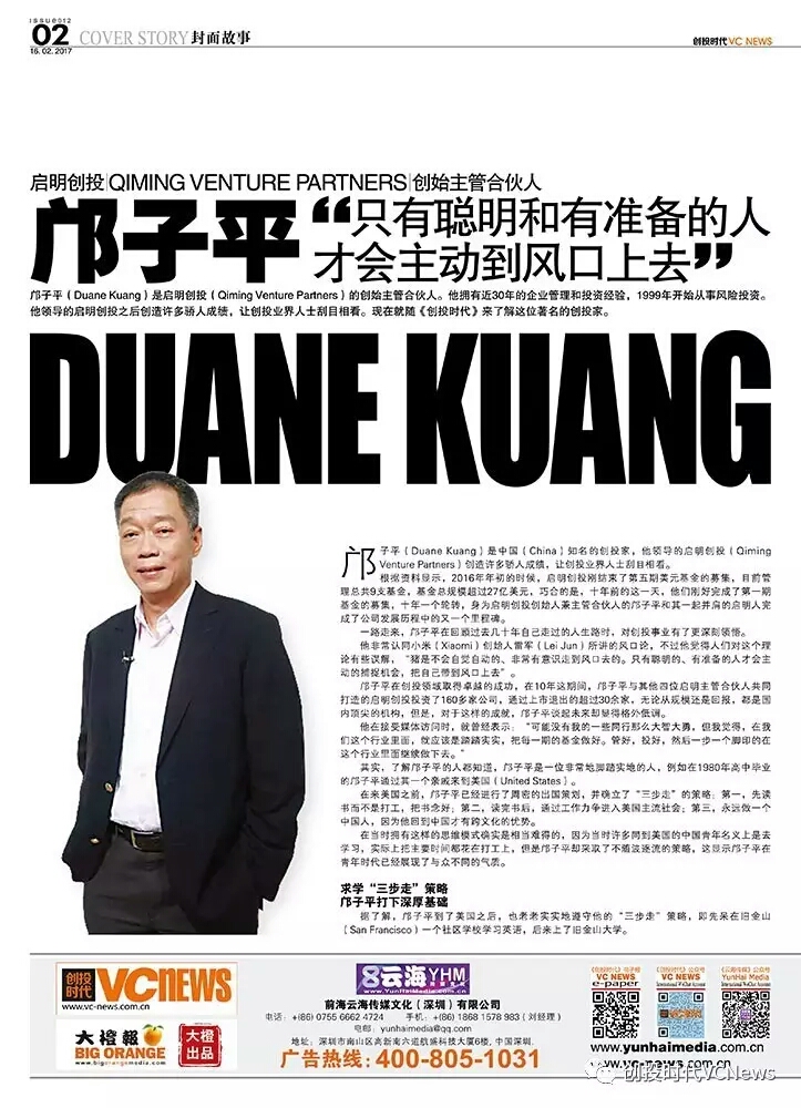 启明创投成立于2006年,先后在上海、北京、苏州以及香港设有其办公室。启明创投旗下管理着五支美元基金、四支人民币基金,管理资产总额达27亿美元。 启明创投致力于成为中国优秀创业家们的首选投资伙伴。自成立至今,专注于投资互联网消费(Intersumer)、医疗健康(Healthcare)、信息技术(IT)以及清洁环保技术(Clean Technology)等行业早期和成长期的优秀企业。