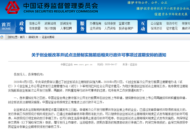 4月27日,中央全面深化改革委员会第十三次会议审议通过了《创业板改革并试点注册制总体实施方案》(以下简称《总体方案》)。